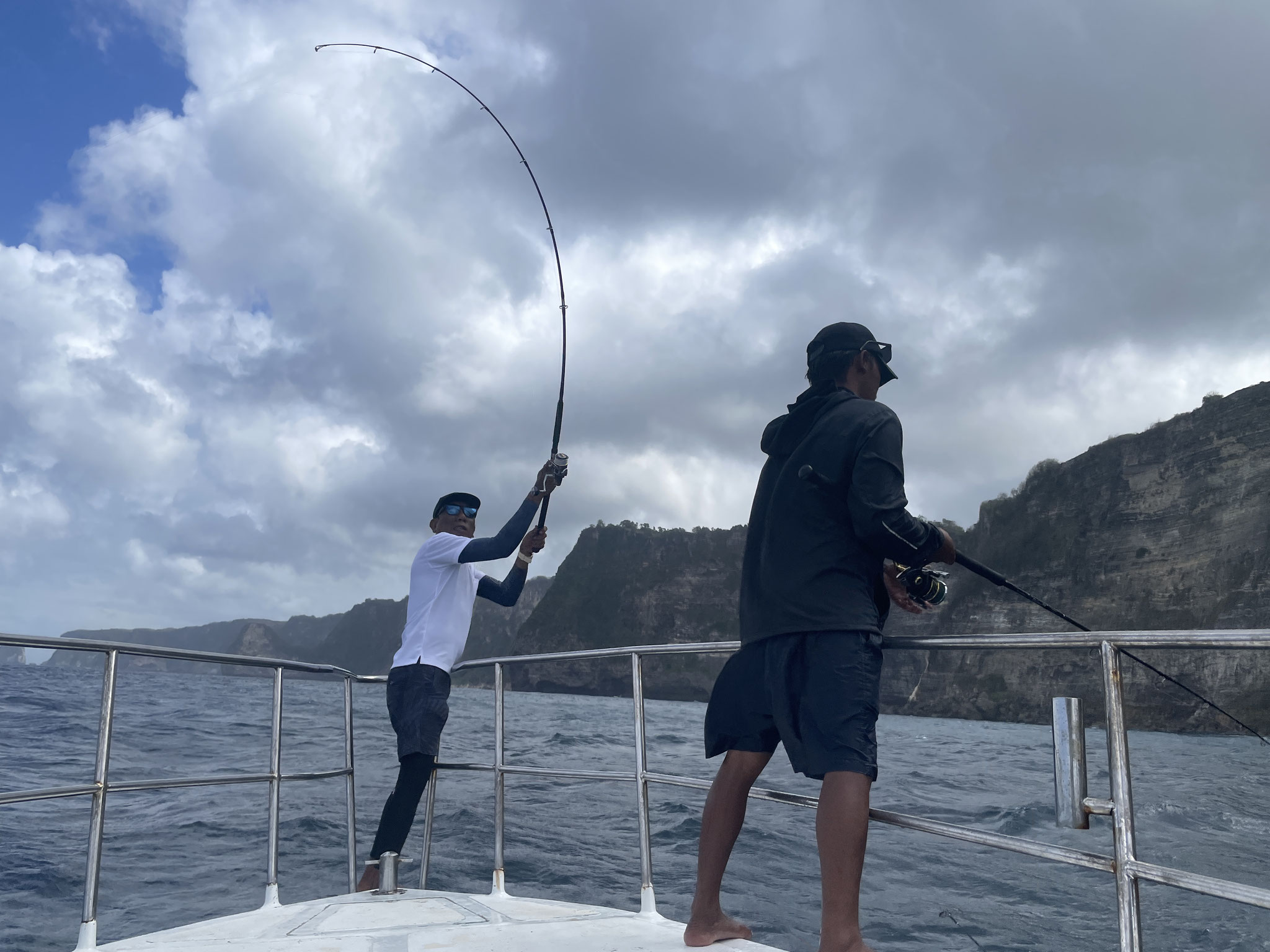 バリ島は、どのタイミングで巨大魚がアタックしてくるのか、予想も出来ないポイントが続く、まさにアングラーの聖地です。突然50キロ級のサワラがアタックしてきたと思ったら、目の前でナブラに遭遇し、入れ食い状態になることもしばしばです。まさに体力とレスポンス勝負のサバイバルスポーツフィッシングです。そのあたりを肝に銘じて挑んでください。