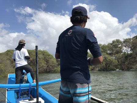 まるでジャングルのようなマングローブの中には、ワニや野鳥が生息し、無数のバラマンディが海底に潜んでいます。普段、ブラックバス釣りをされている方にお勧めのフィッシングです。バラマンディの引きの強さを是非体感して下さい。