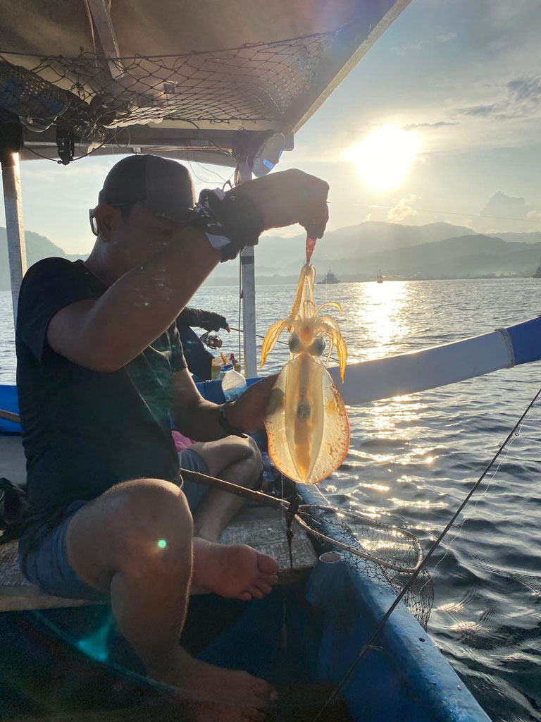 ターゲットは、アオリイカ、コウイカ、ヤリイカ、スルメイカ。ジュクン船からのボートエギングのため、良いときは5キロ以上のアオリイカが、入れ食い状態になる、大変楽しい釣りになります。