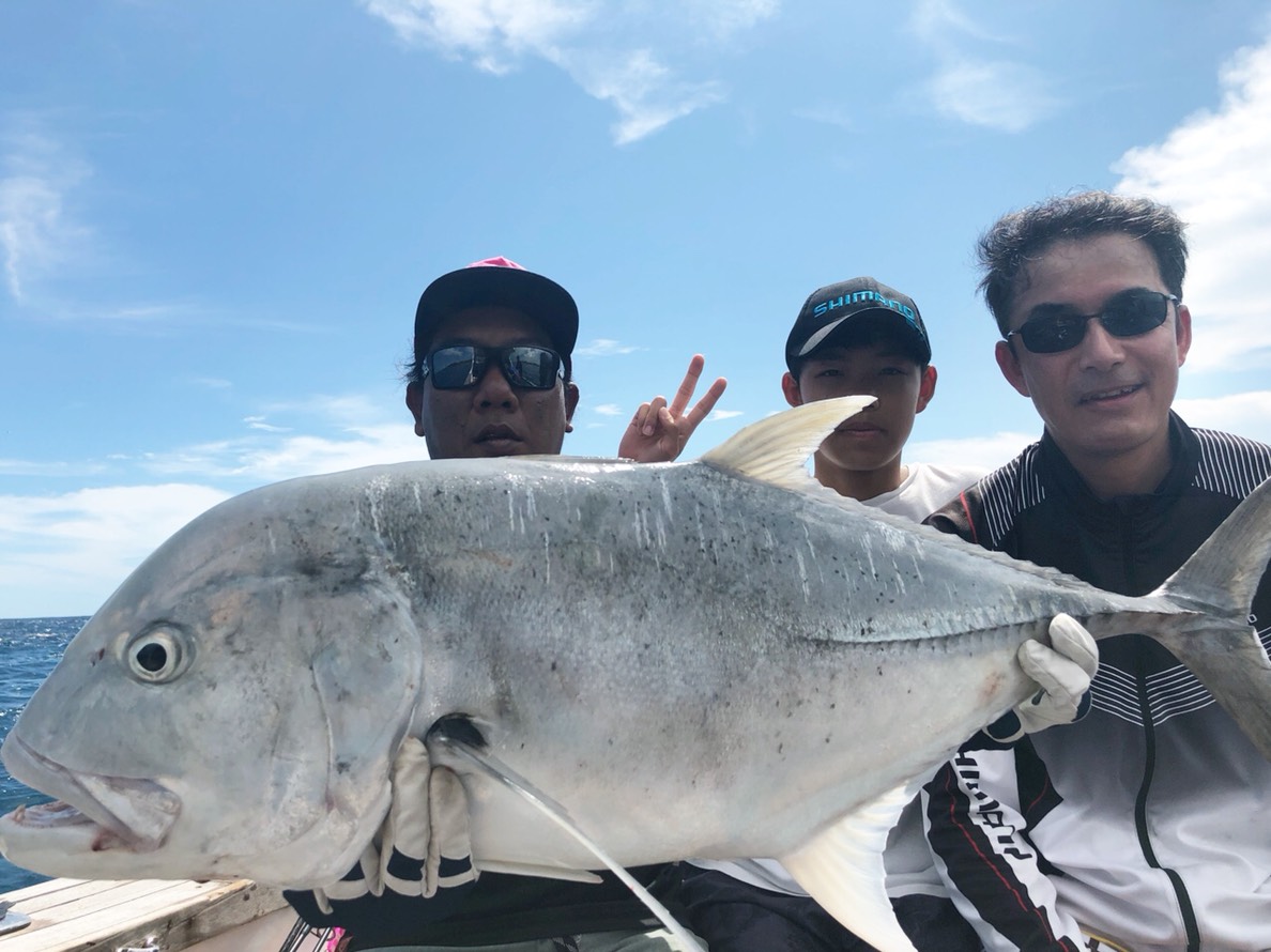 基本的に、GTの生息する海は、潮流が凄まじく早いラフコンディション下での激しい釣りになります。船酔いする方は、必ず事前に酔い止めを服用ください。ライトなファミリーフィッシングをご希望の場合は、別ポイントをお選びいたしますので、事前にお知らせください。